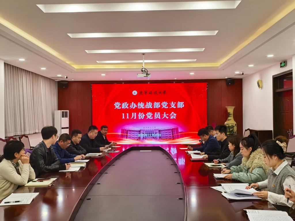 11月27日下午,党政办统战部党支部在校部120(东)会议室召开党员大会,组织开展集体政治理论学习。校党委书记孟劲松同志以普通党员身份参加会议。党支部书记李宁同志主持会议。