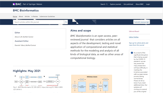 BMC出版集团是施普林格∙自然旗下机构,不断推出一系列高质量的同行评议期刊,包括BMC Biology、BMC Medicine等涵盖范围较广的期刊,以及Malaria Journal、Microbiome和BMC系列期刊等专门刊物。BMC以“科研永不止步”为信条,致力于不断创新,以更好地满足作者群体的需要,确保所发表论文的完整性,并积极推广开放研究。BMC Genomics影响因子为3.594,JCR 2区,中科院2区。BMC Bioinformatics影响因子为3.242,JCR 2区,中科院3区。其中BMC Bioinformatics是中国计算机学会C类推荐期刊。此次赵琪教授担任两刊编委是马博在线手机版(大中国区)计算机学院在职教师在中国计算机学会推荐期刊任职的突破。
