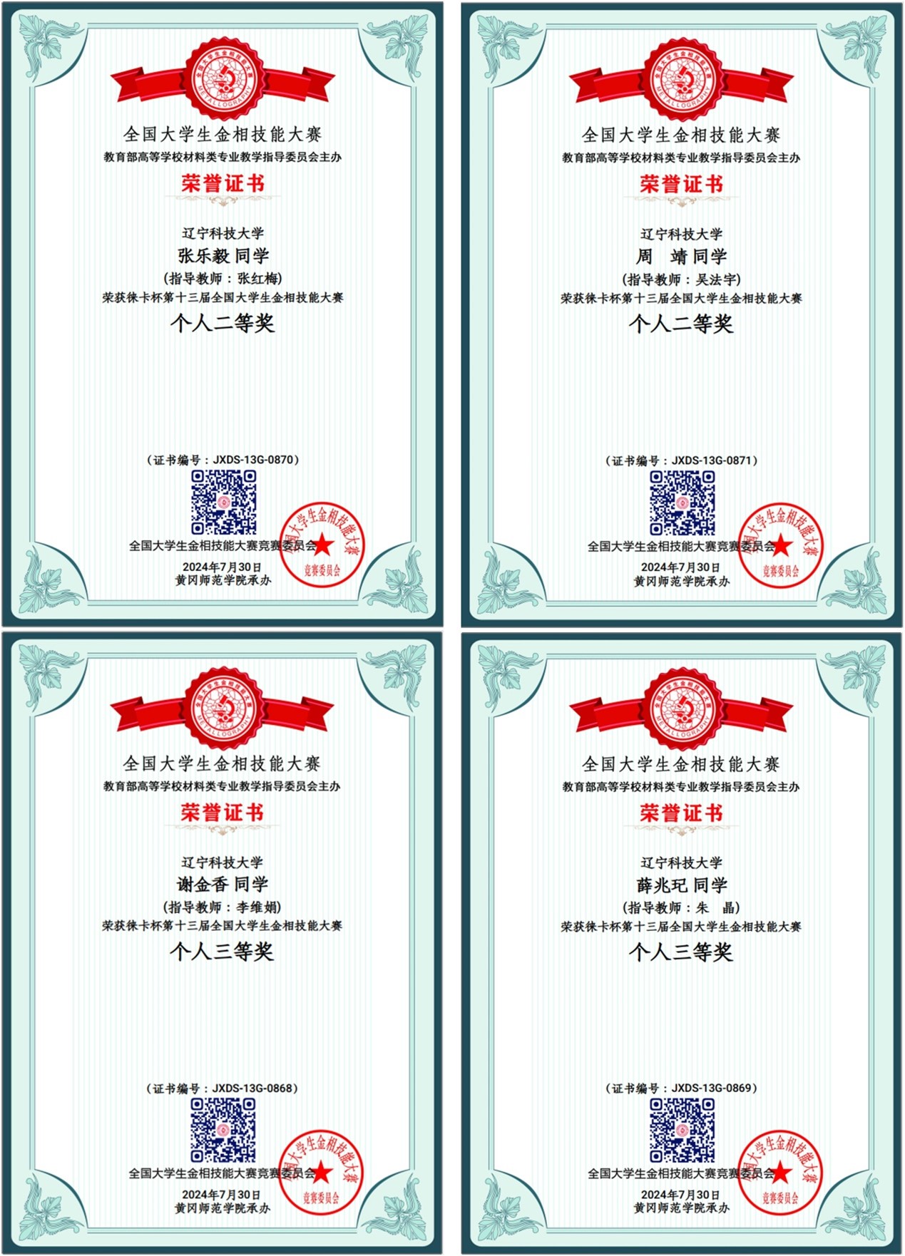 7月25日至30日,由教育部高等学校材料类专业教学指导委员会主办、黄冈师范学院承办的第十三届全国大学生金相技能大赛决赛在湖北黄冈举行。本次大赛分校内预赛、分区赛复赛和全国总决赛三个阶段。来自清华大学、上海交通大学、北京科技大学等531所大学的1898名选手同台竞技。经过多天激烈的角逐,马博在线手机版(大中国区)材冶学院学子凭借严谨的实验素养和沉着的竞技状态,最终荣获二等奖2项,三等奖2项。