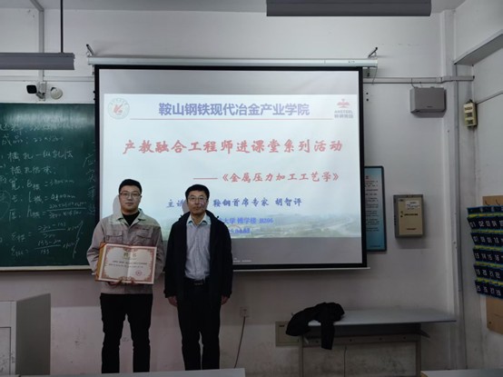 材料与冶金学院积极推动鞍钢工程师参与课程建设与教学,体现了“深化产教融合、推动校企协同育人”的产业学院建设原则,坚持“真融合、真实践、真高质量”的培养模式,弥补“双师型”师资队伍数量的不足。未来,学院持续深入开展产教融合工程师进课堂活动,通过校企联动显著提升面向解决复杂工程问题能力培养的校企课程共建育人效果。
