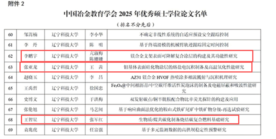 材料与冶金学院3篇硕士论文获评中国冶金教育学会2025年优秀学位论文