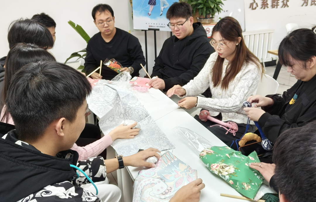 从研究布料纹理到互相提醒步骤细节,志愿者们的互动藏在轻声的交流里:有人举着半成品请教针法,有人笑着递过备用的彩绳,原本零散的材料,在一双双手里渐渐有了形状。连桌角那盆绿植的叶子,都像是被这认真劲儿感染,悄悄舒展着枝桠。