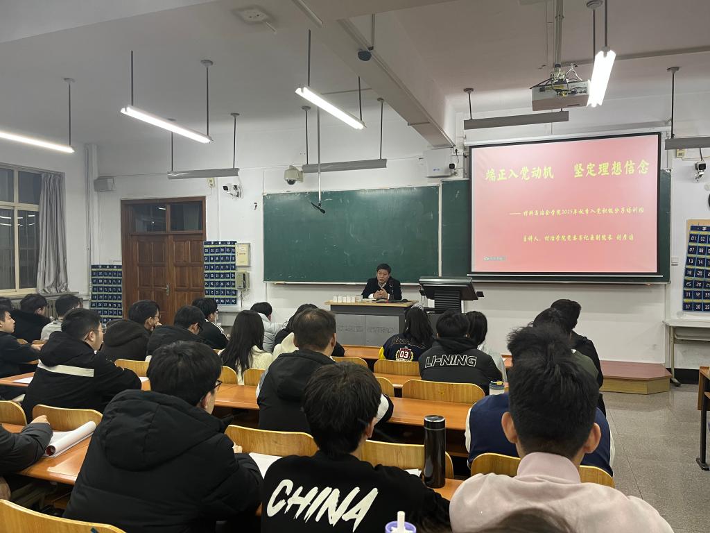 2025年11月11日,材料与冶金学院举办2025年秋季入党积极分子培训班,材料与冶金学院党委书记刘彦国,党委副书记艾英华分别为学员讲授专题党课,一百八十余名入党积极分子参加此次培训。