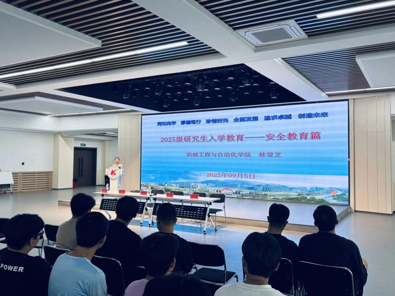 为帮助2025级研究生新生快速适应研究生阶段学习生活,9月5日,机械学院在大学生活动中心开展新生入学教育,学院党委书记、研究生辅导员林雪芝担任主讲人,2025级研究生新生参与。