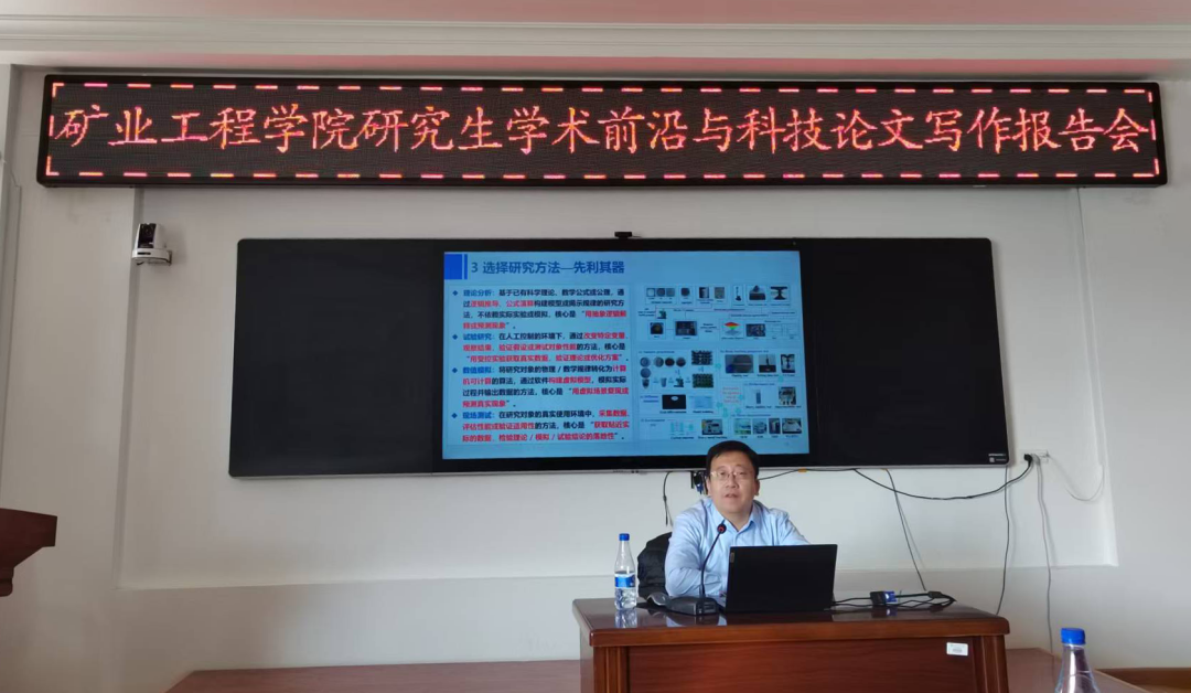 为进一步拓宽研究生学术视野、提升科研创新与论文写作能力,矿业学院于10月19日在博爱楼425会议室举办了“学术前沿与科技论文写作”报告会。报告会邀请了北京科技大学陈秋松教授与辽宁工程技术大学孙琦教授作专题报告,副院长郭小飞主持,学院研究生代表参加。