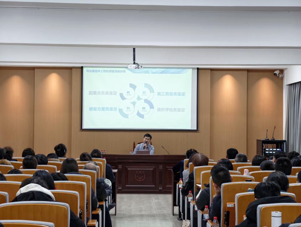 12月2日,经法学院与鞍山市律师协会联合主办的“2025建设工程施工领域工程质量鉴定法律实务论坛”在博识楼A402举行。论坛特别邀请大连市建筑科学研究设计院司法鉴定中心主任尚达、大连光华工程造价咨询事务所司法鉴定审核工作负责人费腾带来专题分享。鞍山市律师协会会长成守印、经法学院院长郭浩淼、副院长邵玲、鞍山市律协建工委委员、律师代表及24级法硕研究生参会。