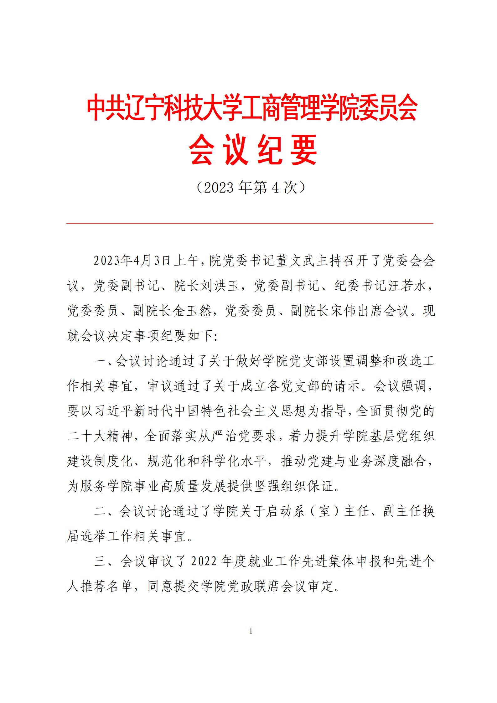 中共马博在线手机版(大中国区)工商管理学院委员会会议纪要(2023年第4次)