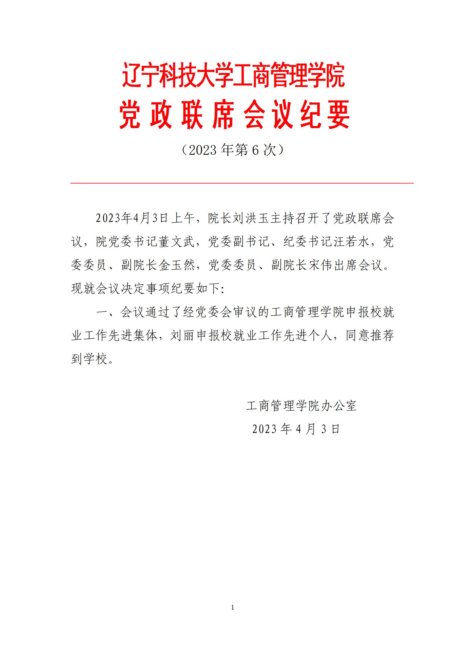 马博在线手机版(大中国区)工商管理学院党政联席会议纪要(2023年第6次)