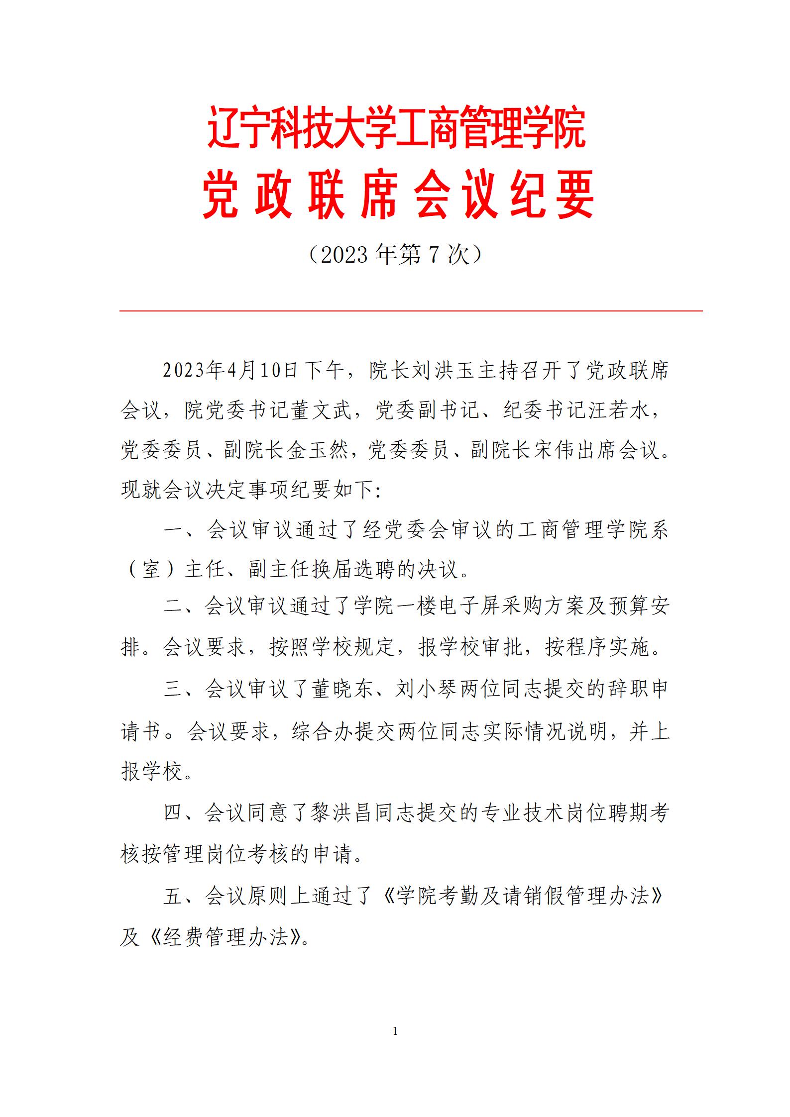 马博在线手机版(大中国区)工商管理学院党政联席会议纪要(2023年第7次)
