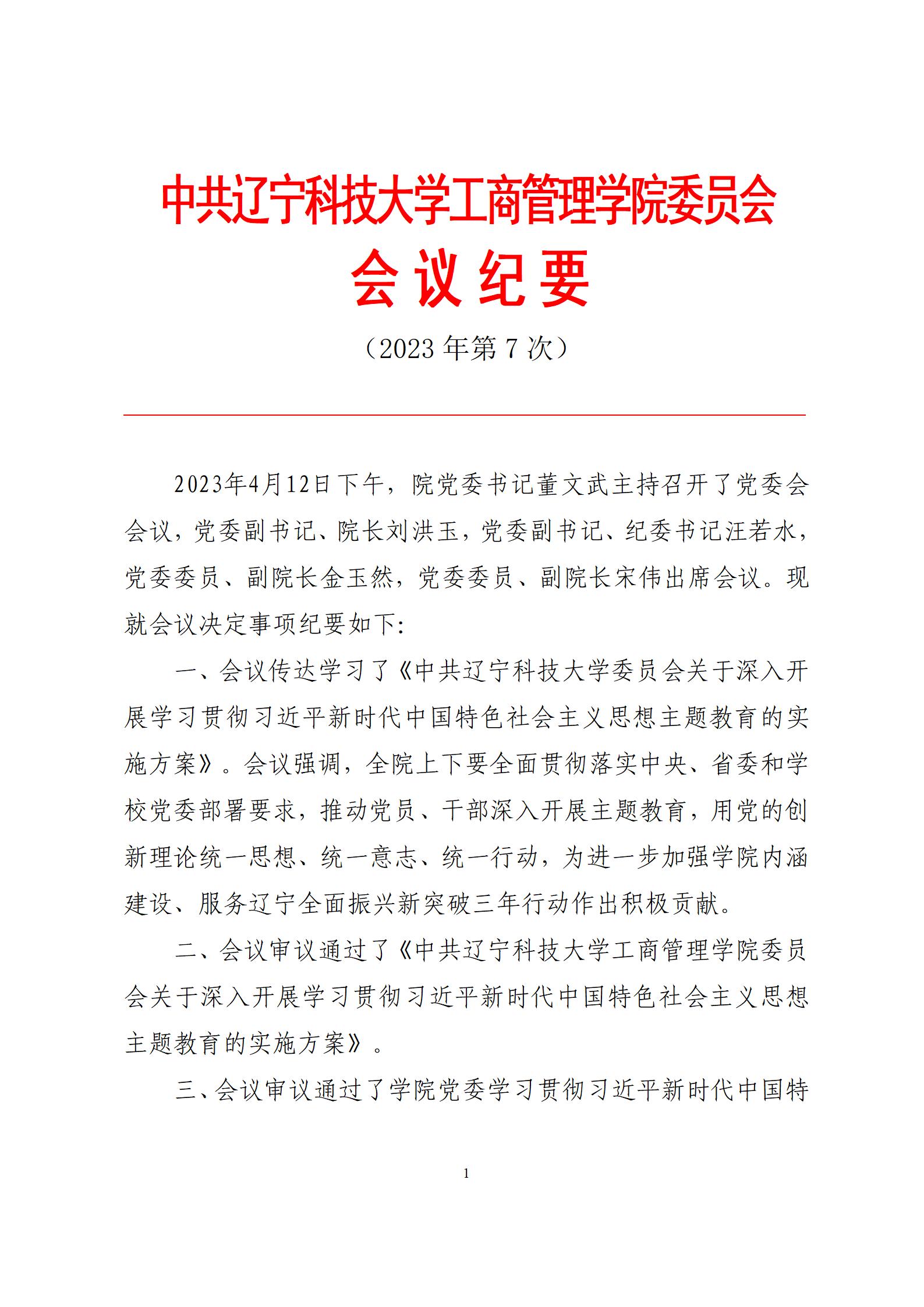 中共马博在线手机版(大中国区)工商管理学院委员会会议纪要(2023年第7次)