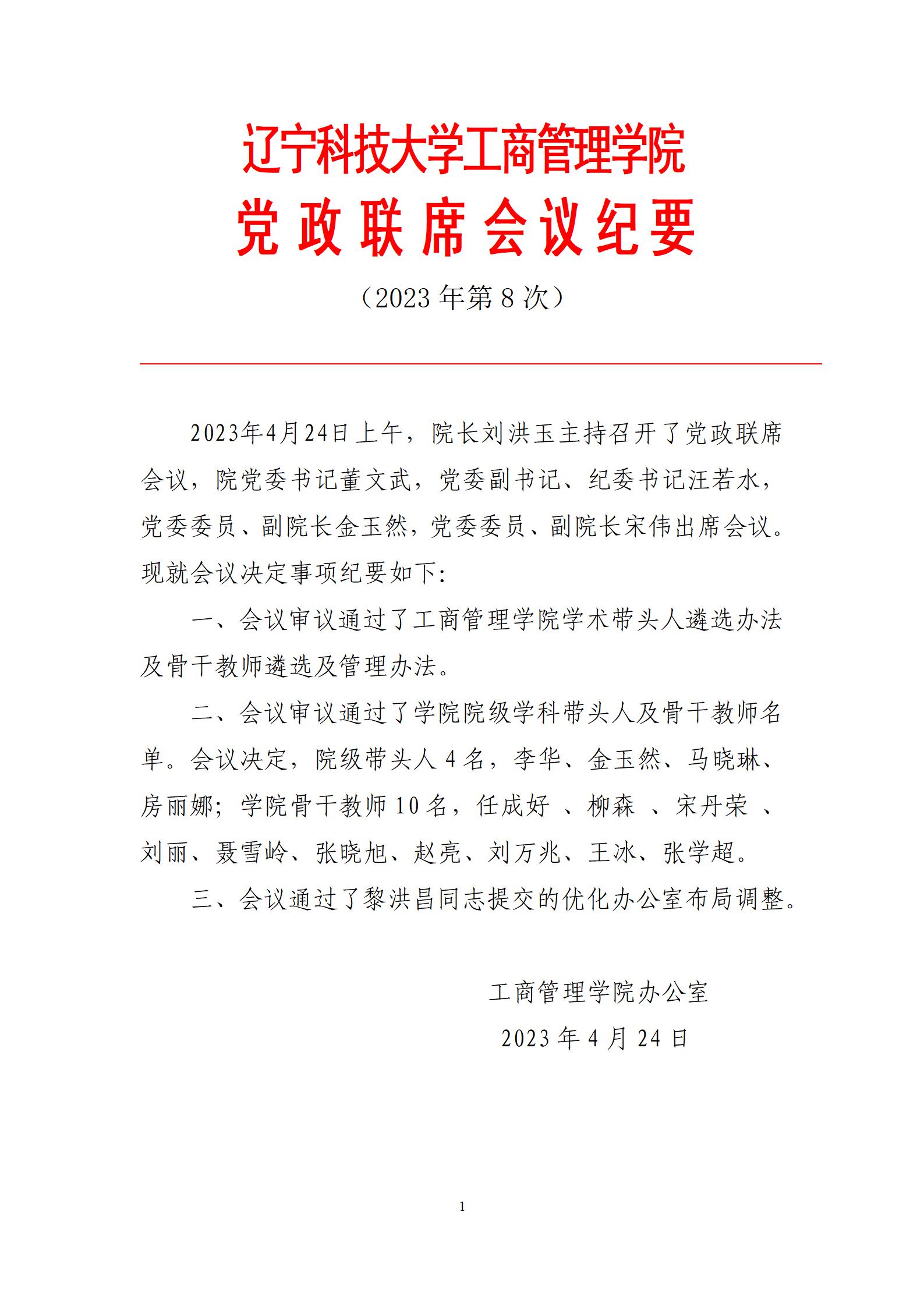 马博在线手机版(大中国区)工商管理学院党政联席会议纪要(2023年第8次)
