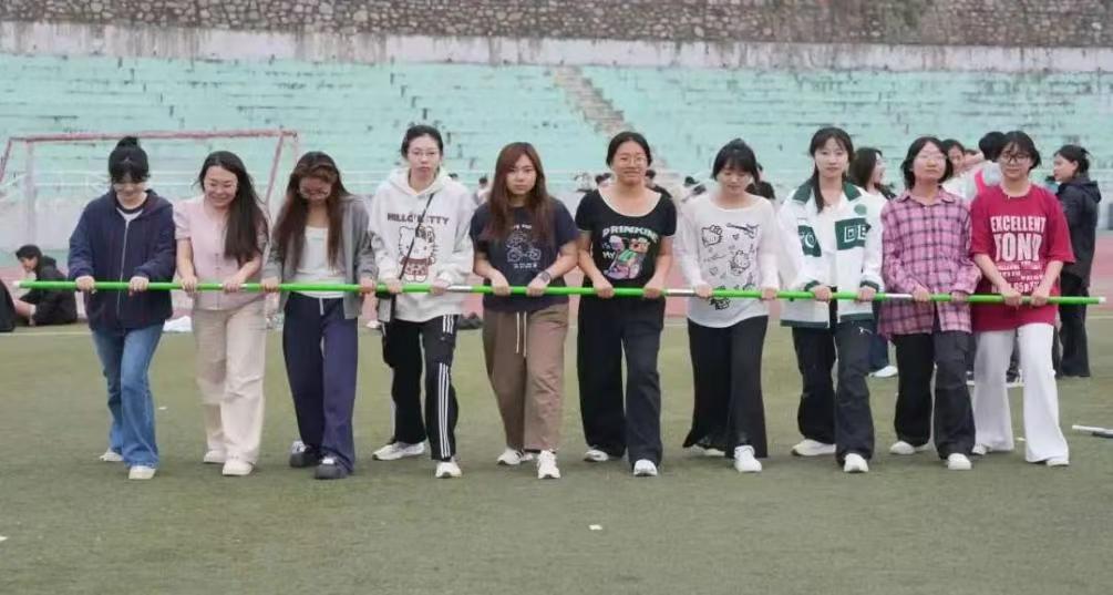 答:我认为在运动会中是否能取得优异的成绩并不重要,训练期间,我们从最基础的步伐训练开始。以火车跑项目为例,团队协作是重中之重,训练时,训练两边的同学将杆撑起来,大家步伐一致,相互配合。这样不仅会降低受伤风险,还提高了我们比赛的速度。虽然训练很辛苦,但看到成绩一点点提高,我们感觉特别值得。