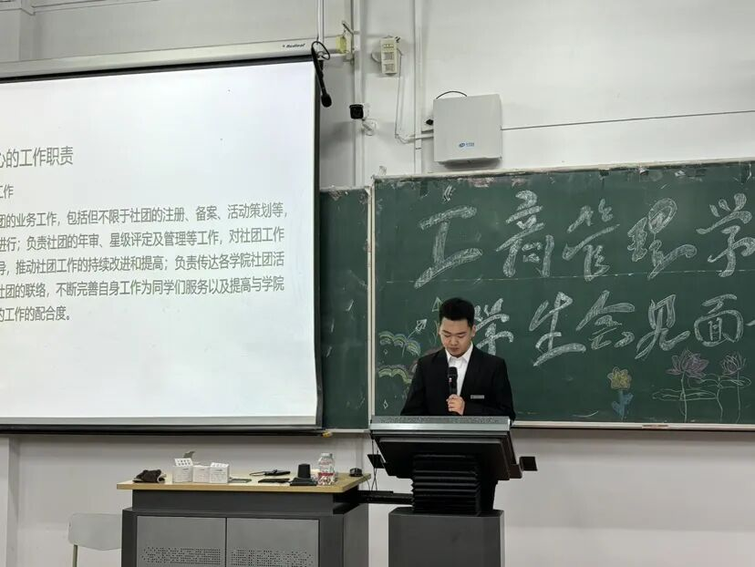 学生会执行主席首先登场,他以沉稳而富有激情的演讲,向新生们描绘了学生会的整体蓝图,分享了在这里收获的成长与感动,并发出最诚挚的邀请:“这里不仅是锻炼能力的平台,更是收获友谊与温暖的港湾。”