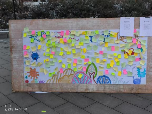 活动现场气氛热烈,内容丰富。活动通过图文并茂的板报进行知识宣传,并设置了互动问答环节,同学们踊跃抢答,在收获小礼品的同时也巩固了防疫知识。更值得一提的是实践体验环节,正确佩戴口罩、猜谜以及标语留言等活动,让同学们在欢声笑语中掌握了实用的防护技能。