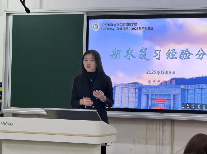 为切实帮助新生筑牢学业根基、明晰备考方向,工商管理学院“先锋领航,学风传承”系列宣讲活动之期末复习经验分享会于12月10日顺利举办。本次分享会邀请沈秀阳、赵景晨两位优秀学姐,结合自身备考实战经历,倾囊相授高效复习技巧与实用备考策略,为大一学子精准赋能,助力同学们科学备战期末、争创优异成绩。 赵景晨结合自身备考经历,从以下五个维度展开了细致分享。一、期末复习的重要性:她以亲身经历说明,高效复习不仅能够扎实巩固学期所学、提升应试能力与备考信心,也对评奖评优等学业发展关键环节起着重要作用;二、学科攻坚策略:针对高等数学、Python、管理学等大一核心课程,她拆解出具体可行的备考方法;三、科学时间规划:她提供了条理清晰的时间安排建议,帮助同学们有序推进复习进程;四、应试心态调整:她勉励大家保持从容稳健的心态,以更好地应对考试压力;五、实战答题技巧:她传授了许多实用技巧,助力同学们在考场上发挥出色。整场分享内容详实、重点突出、针对性强,为新生科学备战期末考试提供了全面且具有指导意义的行动指引。