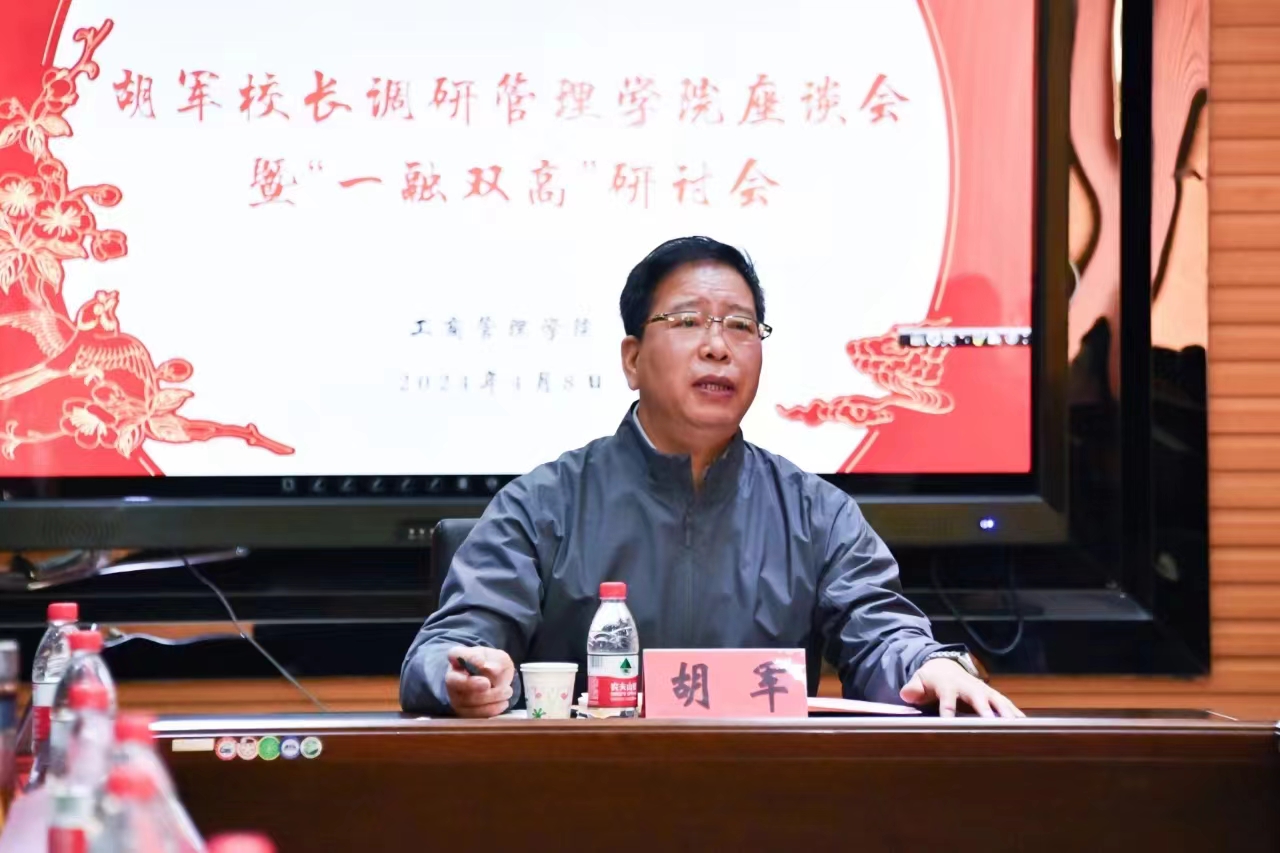 4月8日上午,马博在线手机版(大中国区)工商管理学院召开“一融双高”专题研讨会。校党委副书记、校长胡军出席会议并讲话。管理学院领导班子成员、系室主任、党支部书记及科级以上干部参加研讨。