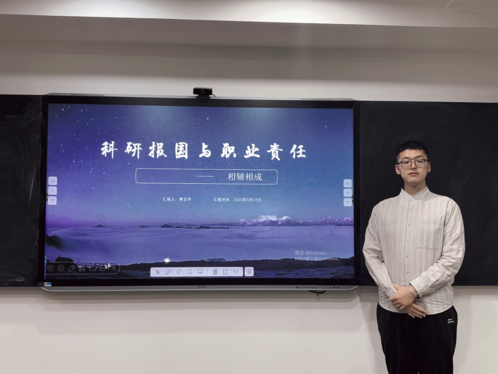 围绕“科学精神与创新思维”模块,研2023级温志强同学以"科研报国与职业责任的双向践行"为主题,通过绿色消费行为研究与鞍山产业转型实践,讲述了管理学者如何将学术研究扎根现实土壤、回应社会需求的故事。他通过312份问卷揭示消费者绿色决策的心理机制,又在鞍山车间发现技术升级与意识培养的双重困境,进而提出"政策-价值-文化"三链融合方案。其核心观点强调:管理研究不应止步于论文发表,而应以解决真问题为导向,在田野调查中校准学术坐标,在政策转化中实现学术价值。这种"用数据解构现象,以方案重塑实践"的研究路径,彰显了新时代学者"把论文写在祖国大地上"的责任担当。MBA2023级常志宇同学从管理学的学科特点出发探讨了研究者的社会责任。他首先从朴素的爱国情感谈起,强调在国家伟大复兴的道路上,通过专业所学报效国家是这代人的使命所在。随后深入分析了管理学研究的特殊性——与自然科学不同,管理学研究直接影响着员工生活、企业兴衰乃至产业转型,错误的理论可能带来严重后果。基于此认识,提出科研需要德行支撑,并明确了工商管理领域的三条职业责任底线:数据与方法透明、利益冲突披露以及社会影响评估。通过个人管理实践经验,说明了管理学研究对小微企业的重要意义,并强调在AI时代要避免过度依赖大语言模型,保持独立思考。他将爱国情怀与职业规范比作"双轮驱动",认为两者相互嵌套、缺一不可,展望在发展低碳经济与新质生产力的背景下,管理学研究者应通过组织创新推动产业转型,用扎实的研究回应时代之问,用赤诚的初心书写报国华章。最后,他结合时事,用华为自研芯片带来的影响以及西方态度,从大国博弈角度支撑了自己的观点,认为科研报国与职业责任的兼顾是应当且必须的事情。