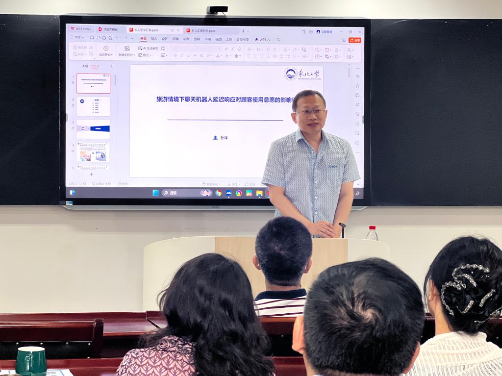 随后,孙洋教授带来“旅游情境下聊天机器人延迟响应对顾客使用意愿的影响研究”专题分享。基于景区、酒店、在线旅游平台三种典型场景的实证分析,他揭示了人工智能服务中的“延迟响应悖论”:在低信息交互场景及明确机器人身份的服务中,适当延迟可增强顾客对服务同质性的感知,进而提升使用意愿;而在高信息交互场景或伪装为人类客服的情境下,延迟则会显著削弱用户体验。这一研究成果不仅为AI客服系统优化提供了理论支撑,更为旅游企业提升智能化服务质量指明了实践路径。