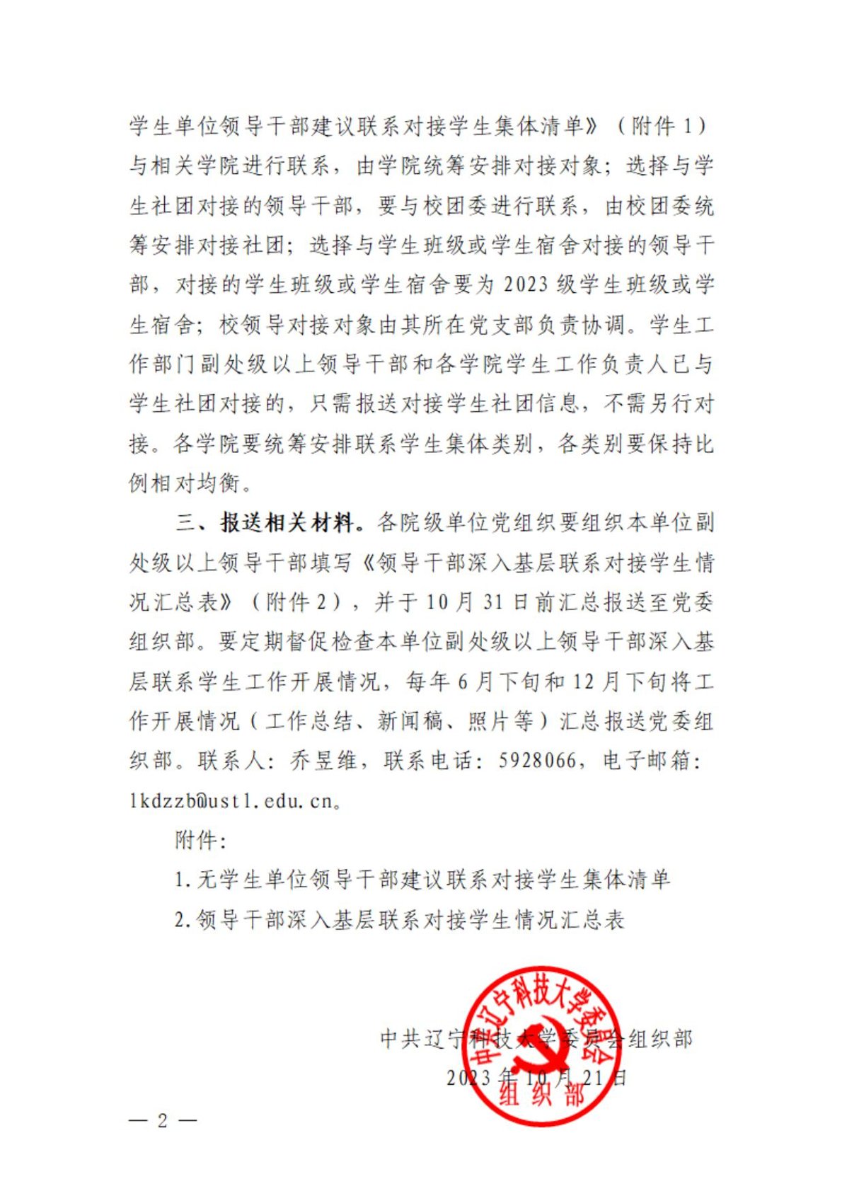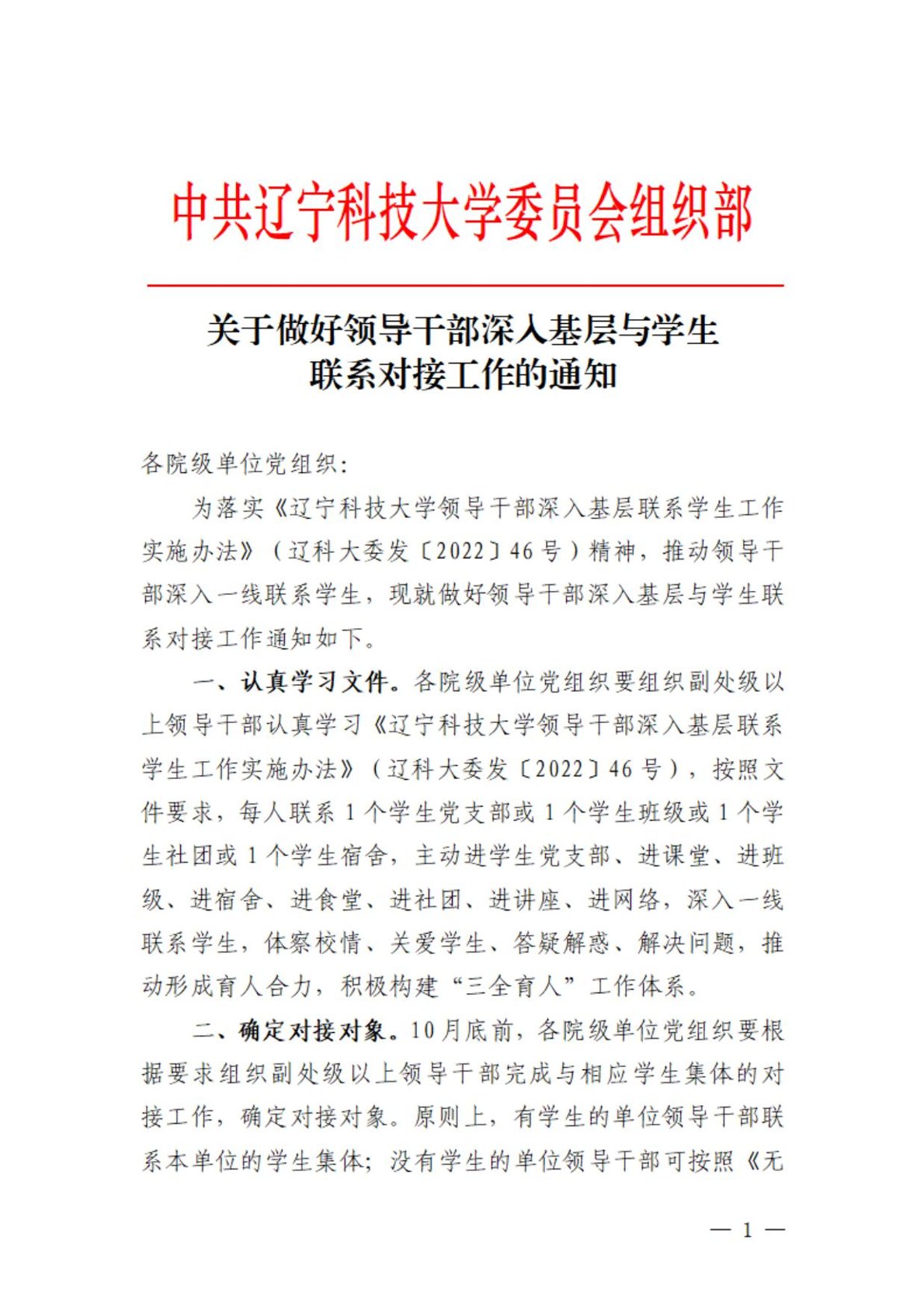 关于做好领导干部深入基层与学生联系对接工作的通知