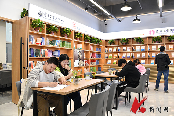 书店中的书目类别丰富,如冶金、化工等专业类图书,学生所需的教辅类图书以及小说、散文等文学类图书等。据了解,书店采用“图书+文创+咖啡+文化活动”的经营业态,且时常会举办书展等系列活动,为师生提供优惠价格。另外,还有部分书籍可供学生免费在店内阅读。
