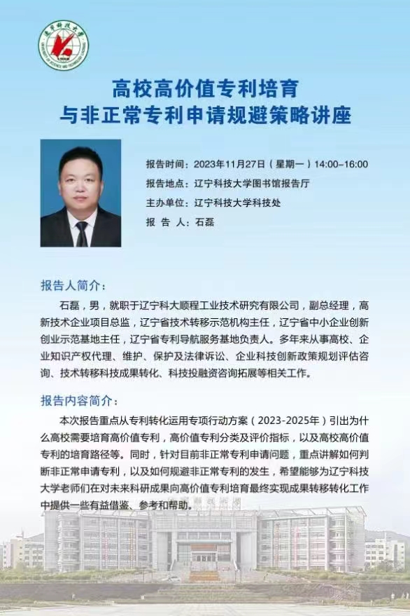学术预告:高校高价值专利培育与非正常专利申请规避策略讲座