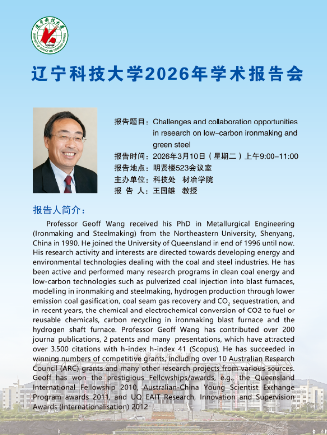 学术报告:Challenges and collaboration opportunities in research on low-carbon ironmaking and green steel