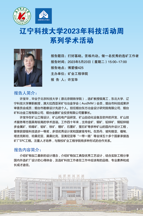 【科技活动周学术预告】打好基础,苦练内功,做一名优秀的选矿工作者