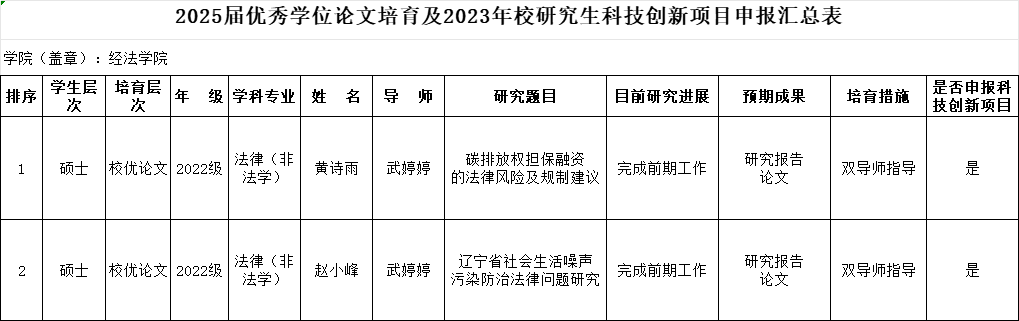 经研究生本人申报、学院法律硕士教育中心审核,确定了拟申报2023年校研究生科技创新项目名单,现予以公示。