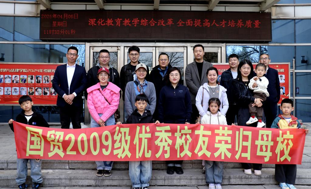 4月6日,经法学院于博识楼A305举办国贸校友返校交流活动,学院党委书记赵智博、院长郭浩淼、党委副书记张国华、国贸系教师贾丹和8名校友参加了本次活动。