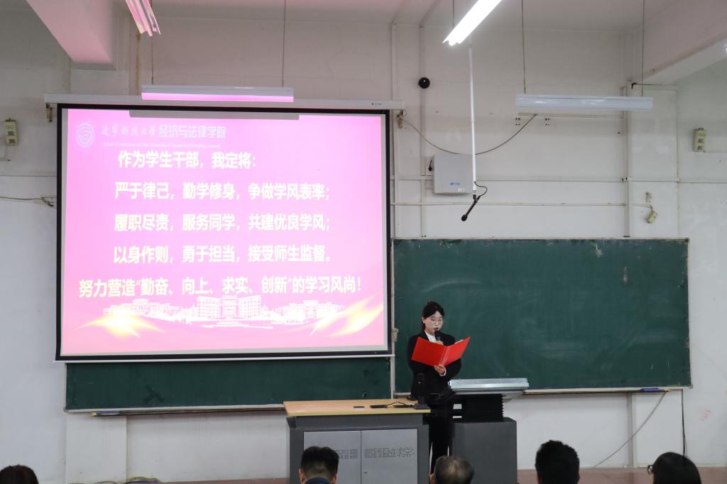 随后,院学办主任李路云强调,学院自管会要以“自我管理、自我服务、自我教育、自我监督”为抓手,从“立规矩、搭平台、浓氛围、守底线”四个方面发力,引领优良学风养成,推动学风建设走深走实。院团委书记张鹏飞指出,学生干部应以思想引领为魂、活动载体为基、服务保障为要,练就真本领、凝聚团队力,以“持久战”的姿态推进学风建设。