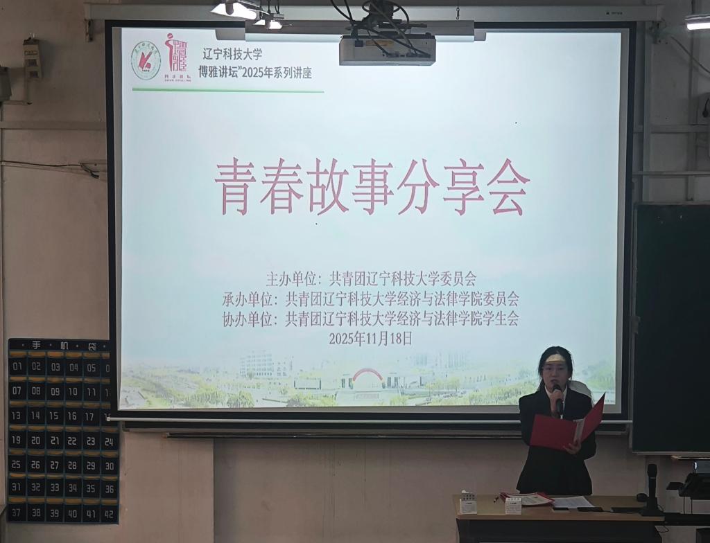 11月18日,由校团委主办、经法学院承办的“博雅讲坛”2025年系列讲座之青春故事分享会在博学楼C202顺利举行。学院团委书记张鹏飞、团学骨干与2024级全体学生共计260余人共同聆听优秀学子的成长经历,在交流互鉴中进一步明晰学业方向、科学规划大学生活。