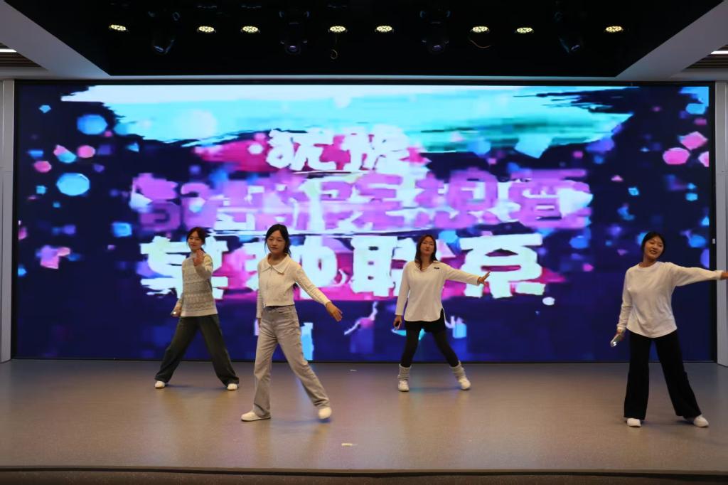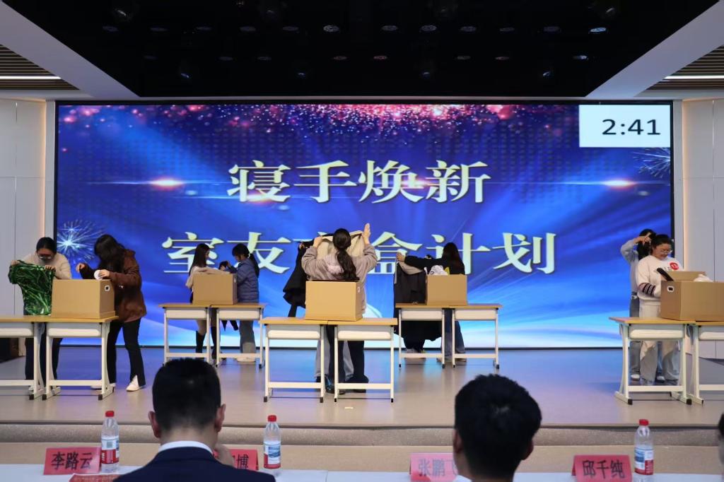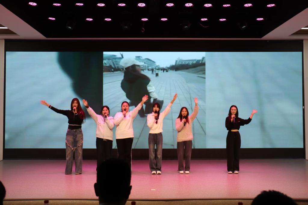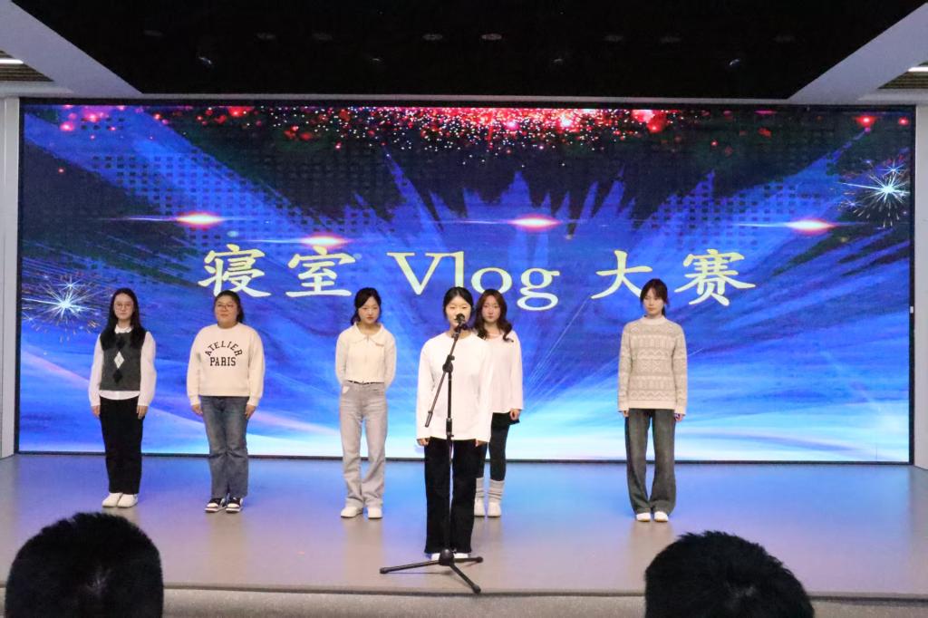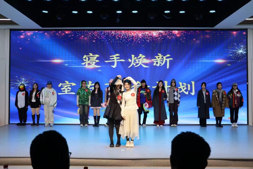 活动在孙浩鸣同学带来的小提琴独奏《富士山下》中拉开帷幕。悠扬的琴声将现场观众带入温柔的意境,也奏响了青春的序曲。本次寝室文化节共设“寝室vlog大赛”“才艺比拼大赛”“叠被子大赛”“‘寝’手换新——室友造型盲盒设计大赛”四个环节,内容丰富、形式多样,充分展现了同学们积极向上的精神风貌。在“寝室vlog大赛”中,各寝室通过精心拍摄的视频,记录了日常生活中的欢笑、互助与感动,传递出乐观进取的生活态度,展现了寝室成员间真挚的情谊与青春的活力;“才艺比拼大赛”更是将气氛推向高潮。合唱《相亲相爱一家人》唱出了同学们守望相助、携手共进的真挚情感,歌曲《Free Loop》展现了青年学子挣脱束缚、追求热爱的洒脱与自信,赢得现场阵阵掌声与欢呼;紧接着的“叠被子大赛”环节中,选手们在主持人的号令下迅速进入状态,动作干脆利落,一个个棱角分明的“豆腐块”在方寸之间诞生,展示了寝室生活中的严谨与巧思;“‘寝’手换新——室友造型盲盒设计大赛”则将现场气氛再次点燃。选手们以寝室为单位,利用有限时间和服饰,创意搭配出或优雅、或个性、或灵动的造型,充分体现了同学们的时尚品位与青春想象力。每一套穿搭都像是一份独特的青春宣言,彰显着自信与张扬。钮苏涵同学随后带来的舞蹈《我最红》更以动感的节奏与热烈的姿态诠释了“自信耀眼”的主题,将全场气氛推向顶点。