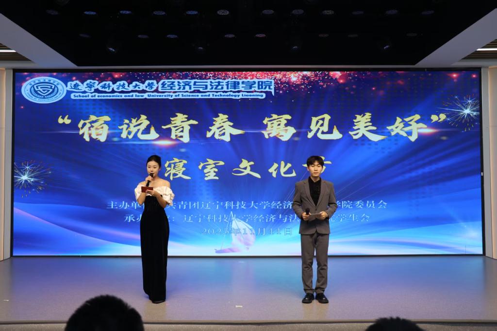 11月11日晚,经法学院于明德楼大学生活动中心举办“宿说青春,寓见美好”寝室文化节。学院党委书记赵智博、学办主任李路云、团委书记张鹏飞、团学骨干及2025级全体新生参加了本次活动。