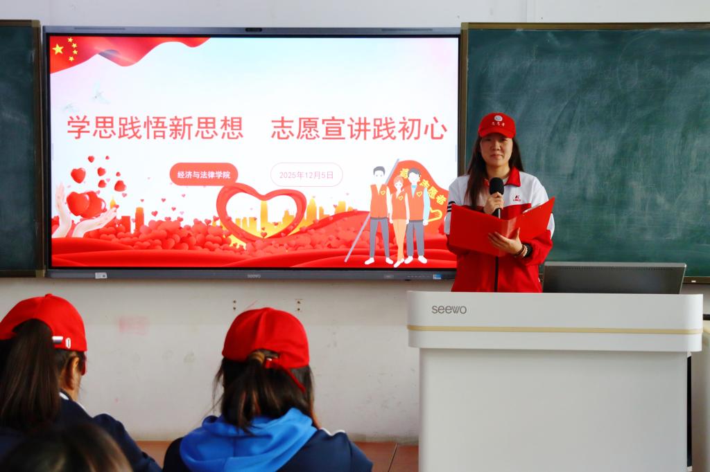 12月5日,正值国际志愿者日,经法学院团委志愿服务中心于博学楼C304举办了“学思践悟新思想 志愿宣讲践初心”志愿宣讲活动。本次活动由金融科技24-2班朱婉怡主持,共有130余人积极参与本次活动。