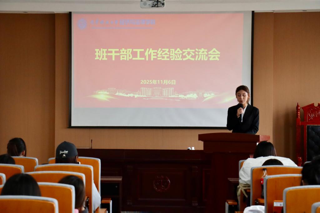 会议伊始,法学24班班长杜子俊围绕班级学习建设、班委协同机制等方面进行经验分享。他指出,班干部应发挥示范引领作用,依托团结向上的班级氛围,促进良好学习风气的形成。他号召班干部们在日常工作中主动担当、勇挑责任。在互动交流环节中,他就“如何有效调动班级学习积极性”等问题结合自身实践进行了耐心解答,与会同学纷纷表示受益良多。