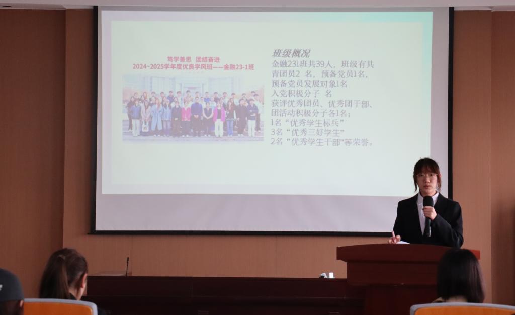 金融231班班长孔思文则从班级组织架构建设与日常行为管理入手进行分享。她表示,班干部在集体中应找准自身定位,不仅要完成分内工作,更要善于发现问题、回应需求,以良好示范力和沟通力推动班级管理不断优化。