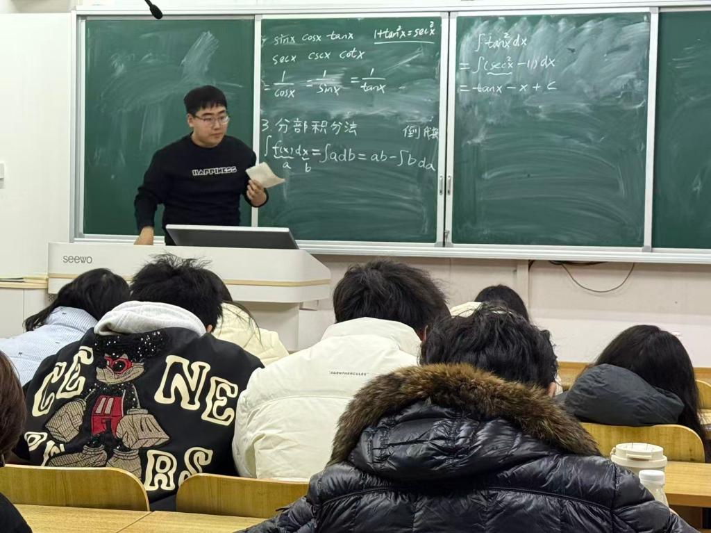 其次,是金融231班的李诗哲同学,他学业表现优异,大学高数、概率论、线性代数等数学相关课程均取得90+的好成绩。他讲解了“不定积分”知识模块,结合典型例题演示解题步骤,并分享了知识脉络梳理方法与错题整理技巧,助力同学们构建清晰的知识体系,提升不定积分逻辑推理与计算能力。