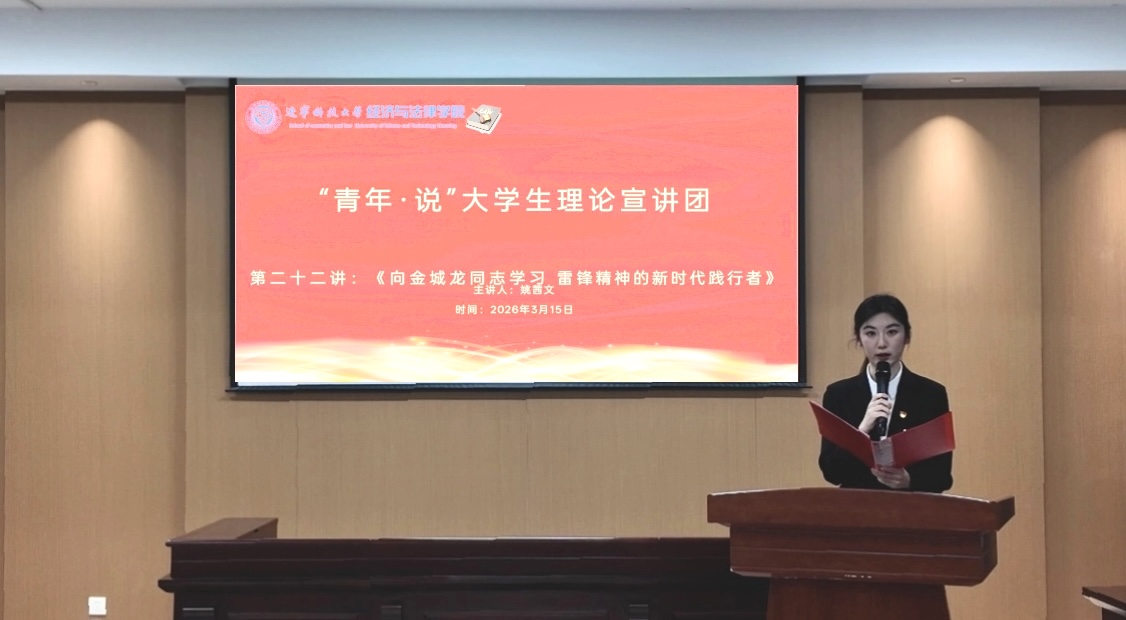 3月15日,经法学院于博识楼A402开展“青年·说”大学生理论宣讲活动。本次宣讲由学院“青年·说”大学生理论宣讲团成员、团委学生副书记姚茜文担任主讲人,共计118名学生参加。