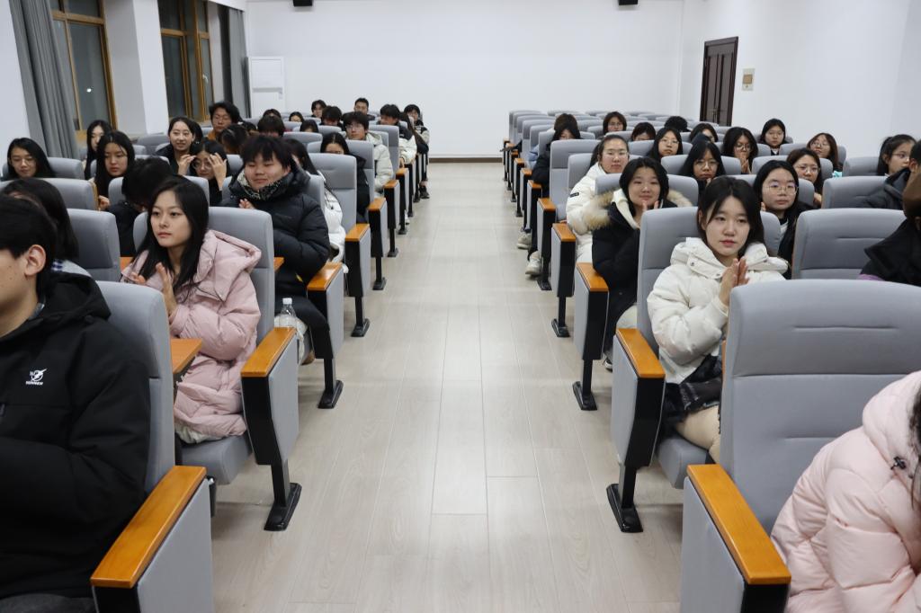 12月30日,经法学院于博识楼A402召开2025年“返家乡”寒假社会实践活动培训动员会。本次会议由经法学院团委实践与社团指导中心副主任宋昕主持,学院团委副书记张鹏飞、学院团委学生副书记兼实践与社团指导中心主任刘帅家以及学院100余名学生参会。