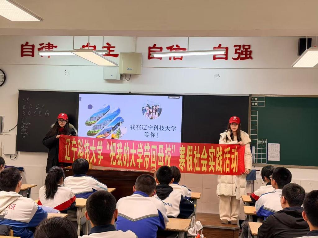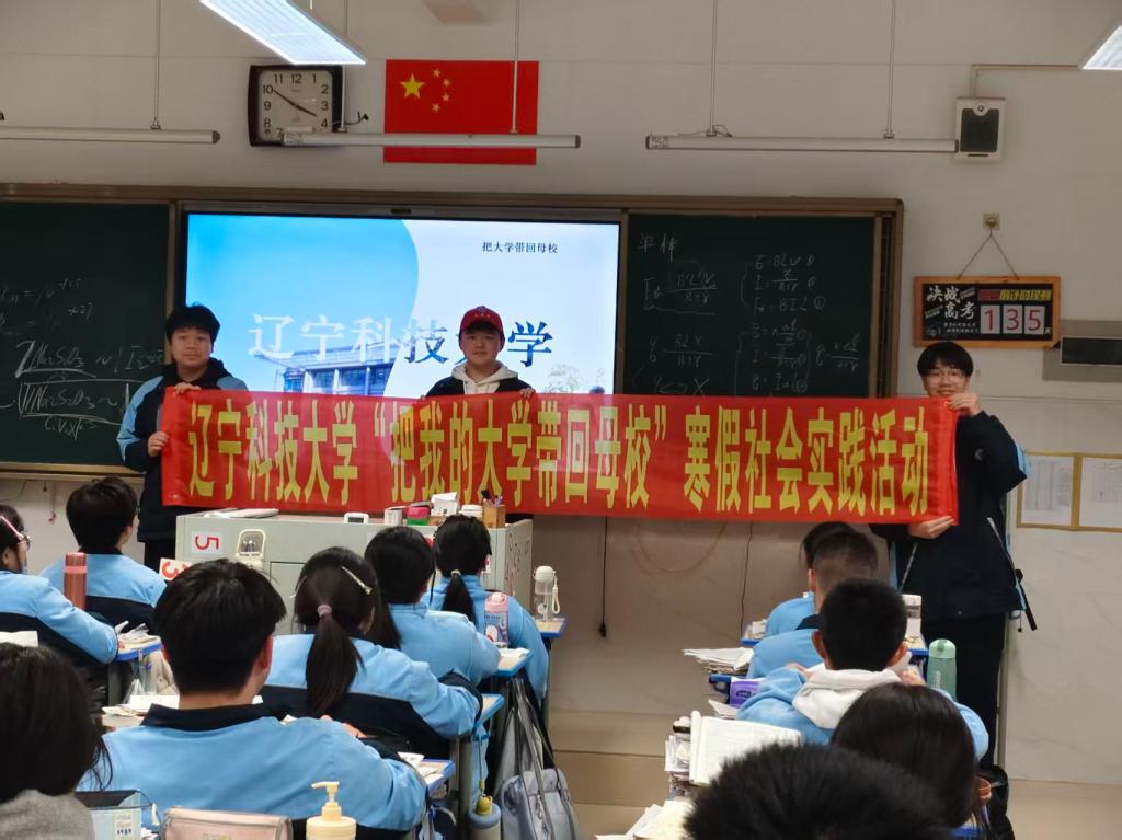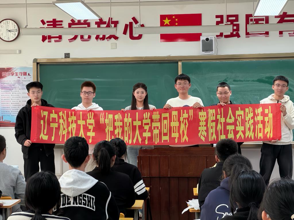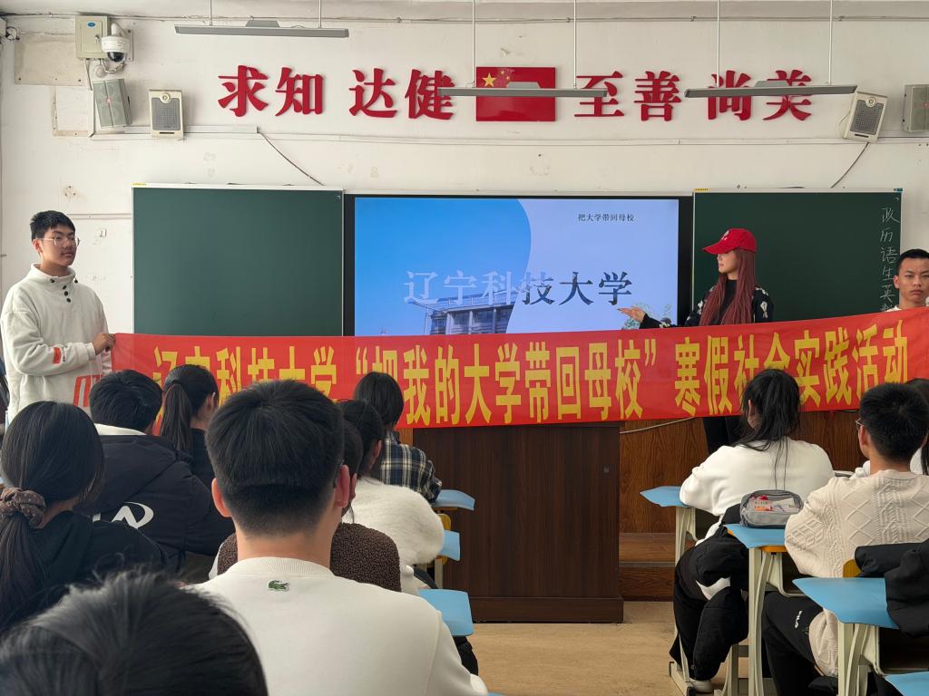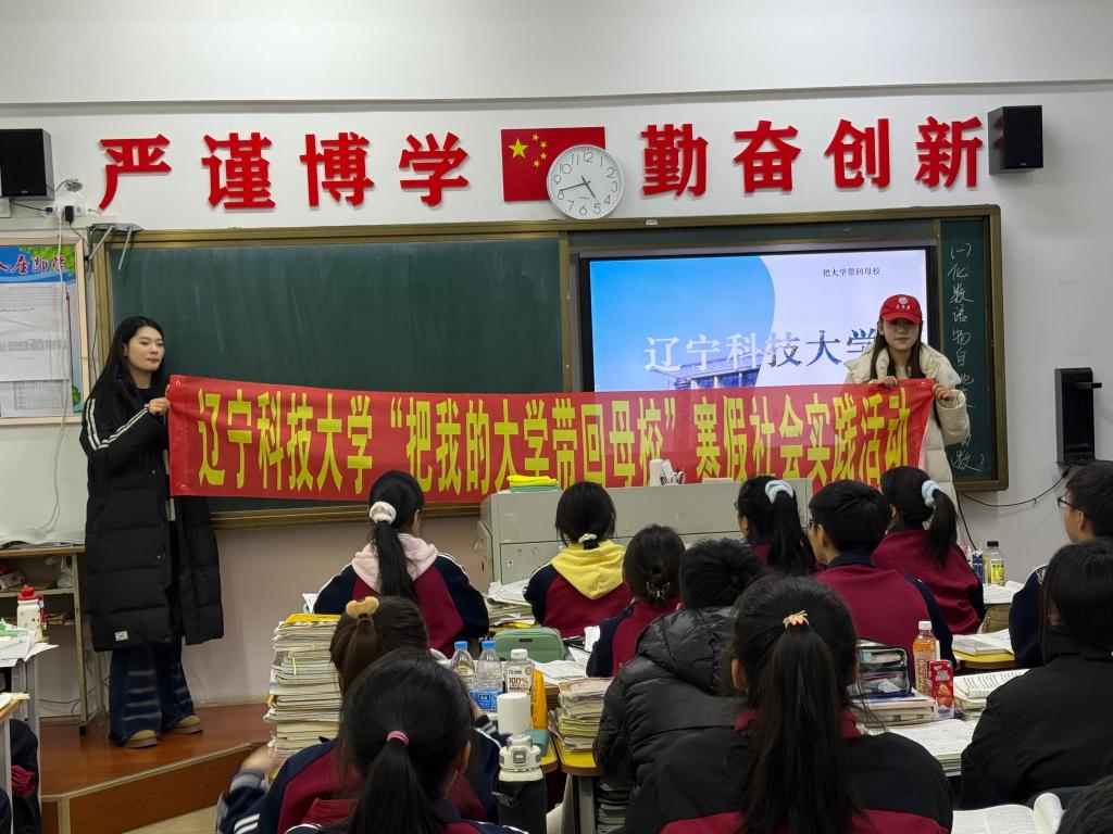 1月15日-1月19日,王梓朔、史睿琪、李承润、李金书4名团队成员先后走进鞍山市矿山高级中学、鞍山市鞍钢高级中学、鞍山市育英高级中学,开展“把我的大学带回母校”寒假社会实践活动。