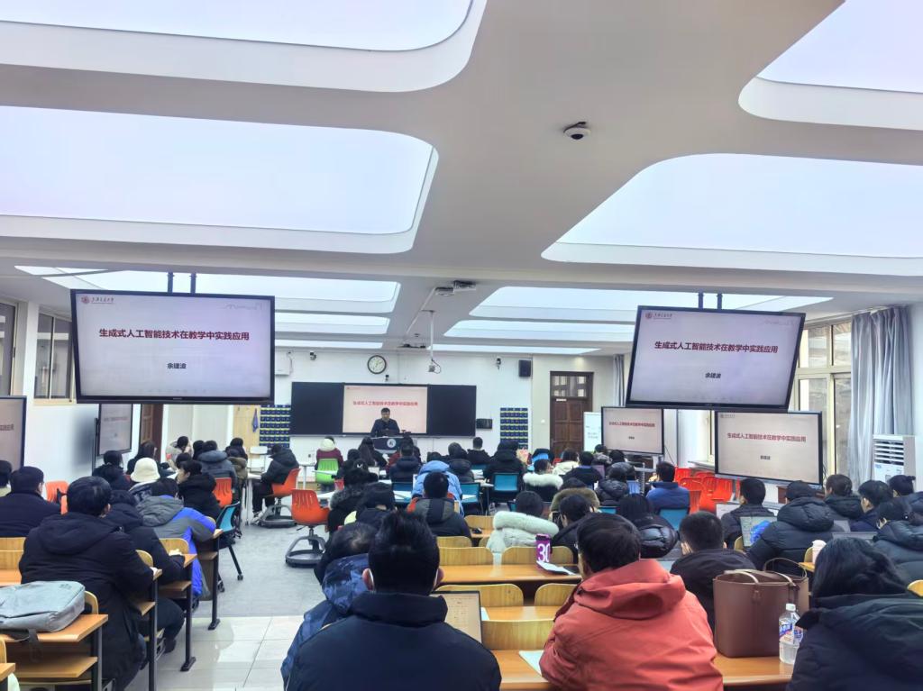 培训邀请上海交通大学教务处课程建设负责人余建波围绕AI赋能智慧课程建设指南与案例分享、生成式人工智能技术在教学科研中的应用与实践展开专题培训。他详细介绍了“AI+HI”智慧课程建设经验,以及“师-生-机”三元互动理念,深入讲解了智慧课程分级体系。此外,他还详细介绍了AI对话设计方法、知识库搭建方法等,并现场演示了DeepSeek等生成式AI平台的教学资源建设方法,逐一拆解从AI辅助课件制作、动画与视频生成、智能体构建等实用技能的操作流程。参训教师纷纷表示,通过“理论+实操”的培训,系统学习了AI教育应用从理念到落地的全过程,对高校智慧课程建设有了新的认知。