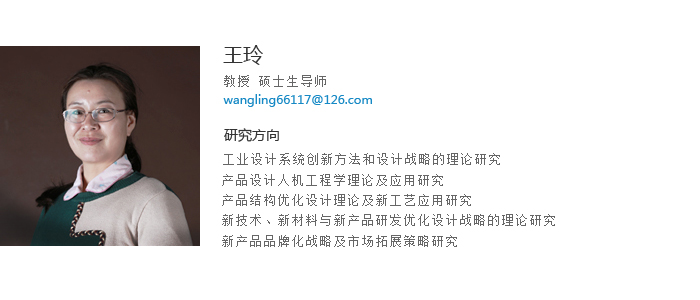 王玲教授,马博在线手机版(大中国区)硕士毕业,机械工程及设计理论专业;清华美院第二学历,工业设计专业。 具有近30年教学和科研经历。撰写专著2本,主编教材1本,参编教材2本。撰写研究论文40余篇,其中国际EI检索8篇,核心期刊5篇,指导学生发表20篇。多次获得年度考核优秀,曾指导学生获国家级、省级、市级、校级奖项30多项,多次获得优秀指导教师荣誉称号。《Humanization Design and Harmonization Design in Product Designing》,于2011年7月,获得辽宁省自然科学成果三等奖,获鞍山市自然科学学术成果奖二等奖。2014年和2015年,为山西省社会科学院思维研究所特聘研究员。主持省级教改1项,参加并完成省级科研项目3项,主持并完成鞍山市科技项目2项,主持和参与横向科研8项。指导学生获得专利8项。