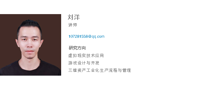 刘洋,硕士毕业于北京工业大学数字艺术专业,深耕动画教育领域二十年,始终致力于专业人才培养与行业实践衔接。其研究聚焦虚拟现实技术、游戏设计及三维数字资产制作与流程管理方向,注重技术创新与产业需求的结合。基于丰富的行业实践经验,在高校教育中重点推动校企合作模式创新,主导搭建产学研联动的实践教学平台,通过引入真实项目案例优化教学体系,强化学生技术应用与项目管理能力,为数字创意产业输送兼具理论素养与实践能力的复合型人才。