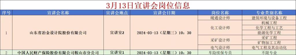 矿业工程学院三月宣讲会岗位信息