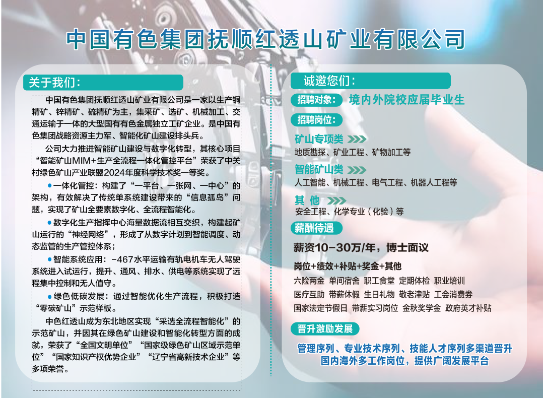 中国有色集团抚顺红透山矿业有限公司校园招聘简章
