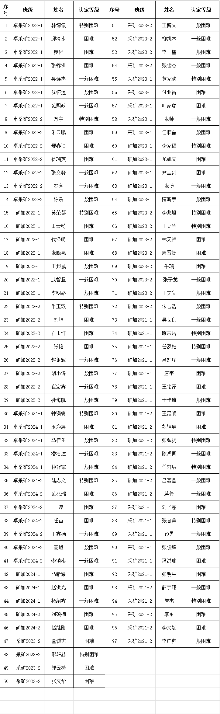 经学生本人申请,班级评议小组评议,学院资助认定工作组审核,现对2024-2025学年家庭经济困难学生认定结果予以公示: