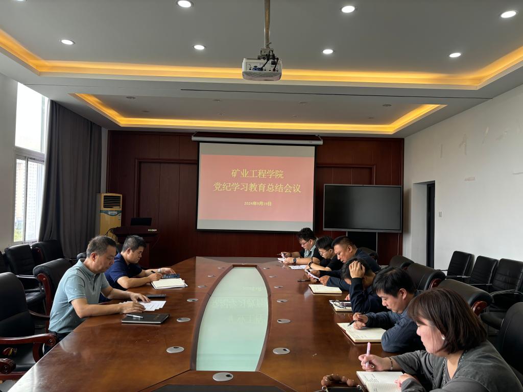 9月19日上午,矿业工程学院召开党纪学习教育总结会议,传达学习习近平总书记对党纪学习教育作出的重要指示精神,全面总结党纪学习教育开展情况和主要成效。院党委书记陈功庆主持会议。院党委副书记白龙君进行传达学习。学院领导班子成员、全体师生党支部书记参加会议。