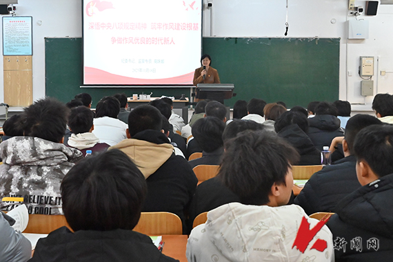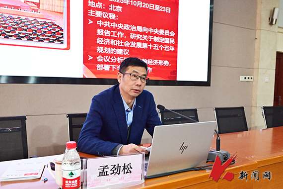 校党委书记孟劲松以“征程万里风正劲 蓝图再绘启新篇——学习贯彻党的二十届四中全会精神”为主题,通过对“十四五”时期非凡历程的回顾,生动解码了“中国答卷”背后的制度优势与发展逻辑。在剖析“十五五”时期这一承前启后的关键历史方位时,他深刻论述了面临的战略机遇与时代责任,引导学生树立宏阔的历史视野与清醒的全局意识。孟劲松寄语青年学子:一要铸牢“1”大品德,培育“一颗红心”,把爱国情、强国志、报国行自觉融入青春选择;二要贯通“3”类知识,锻造“智慧大脑”,以真才实学和创新创造夯实未来竞争新优势;三要强化“2”种能力,既要在实践中锤炼真抓实干的过硬本领,也要在艰苦奋斗中磨砺坚韧不拔的意志品格,为青春梦想插上“腾飞翅膀”,在知行合一、艰苦奋斗中跑好历史的接力棒。
