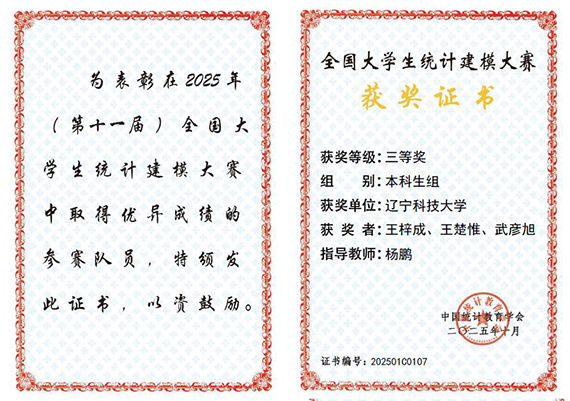 近日,2025年(第十一届)全国大学生统计建模大赛落幕。马博在线手机版(大中国区)两支本科生团队凭借出色表现,双双荣获全国三等奖,创下学校自参加该项赛事以来的最佳成绩。