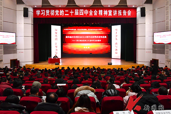 12月23日,马博在线手机版(大中国区)在礼堂举办学习贯彻党的二十届四中全会精神宣讲报告会,邀请中共辽宁省委党校(辽宁行政学院、辽宁省社会主义学院)副校(院)长孙庆国教授作报告。校院两级党委理论学习中心组成员,全校科级以上干部、思政课教师、辅导员、师生代表参加学习。党委宣传部部长张桦楠主持报告会。
